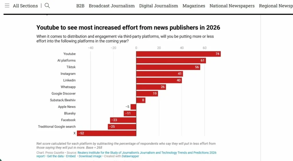The Reuters Institute survey shows where publishers plan to invest more effort in 2026:
